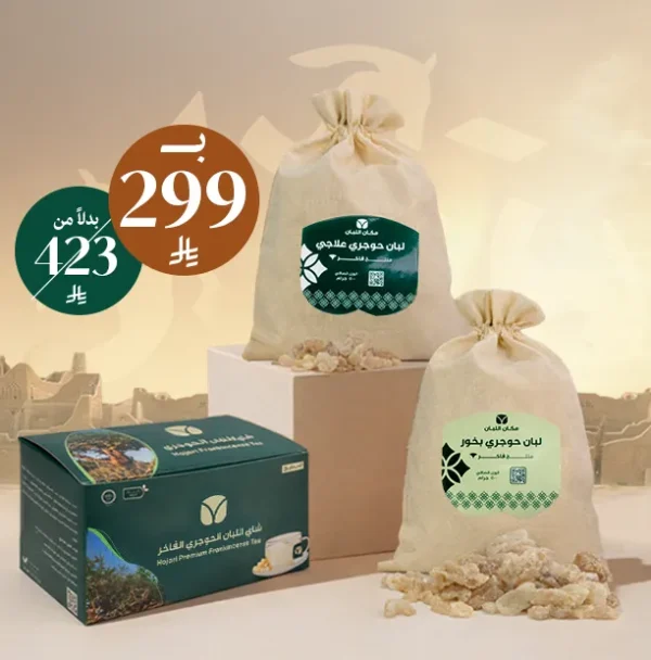 نصف كيلو من الللبان العلاجي + نصف كيلو من اللبان الحوجري للبخور + بوكس شاهي اللبان