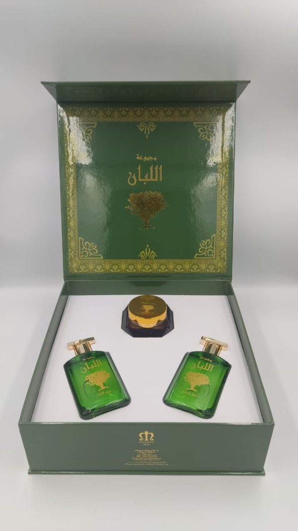 بوكس يحتوي على 50 مل من عطر اللبان الخلاب و50 مل عطر ملكي و20 جرام من بخور دقة العود, بتصميم انيق وجذاب يصلح لتقديمه كهدية للأشخاص المميزين لديك